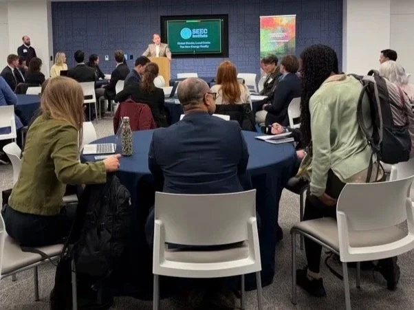 In DC, our event Global Shocks, Local Costs convened experts from the security and climate ecosystems to examine how geopolitical instability is driving real economic consequences here at home — from rising energy bills to disrupted supply chains and growing infrastructure risks. The event, co-hosted by The Earth Commons at Georgetown University, featured recorded introductory remarks from Rep. Kathy Castor and Rep. George Whitesides, followed by a collaborative roundtables.